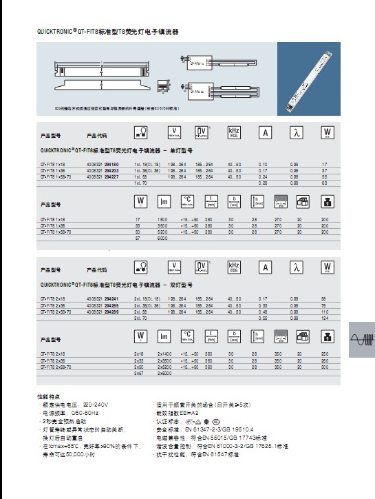 OSRAM QT-FIT8 2X58-70 电子镇流器 FIT T8产品特点