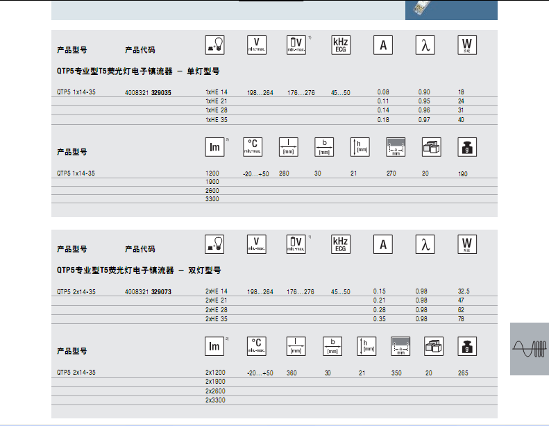 - 产品型号 欧司朗 QTP5 2x49 T5 专业型荧光灯电子镇流器