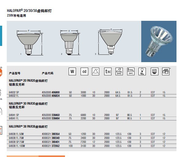 - 产品型号 OSRAM 64841 FL PAR30 75W 230V 30度