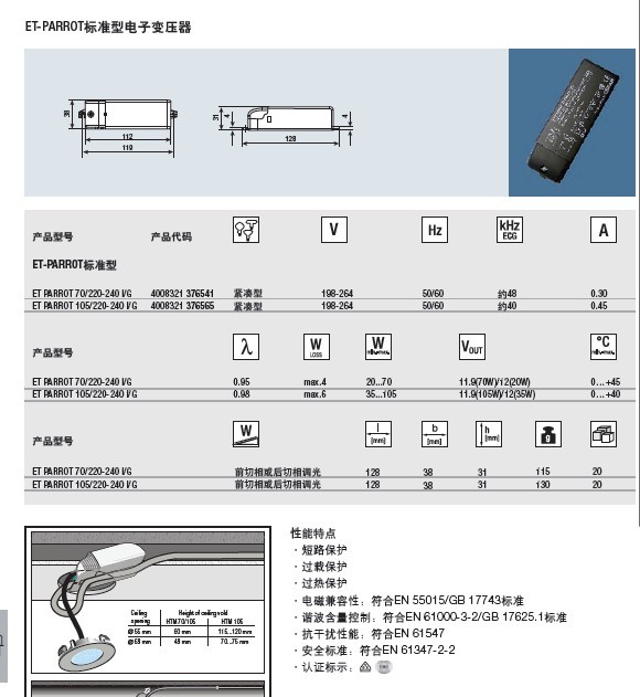- 产品型号 欧司朗 ET-P 60/220-240 调光型电子变压器