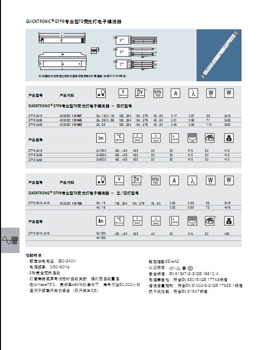 - 产品型号 欧司朗 QTP8 1x58 T8 专业型荧光灯电子镇流器