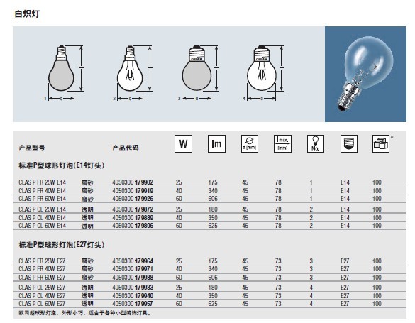 欧司朗40W E27 标准P型球形灯泡透明磨砂
