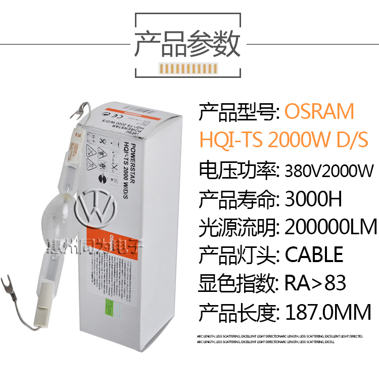 欧司朗 HQI-TS 2000W/D/S 大功率短弧双端金卤灯 体育场用金卤灯