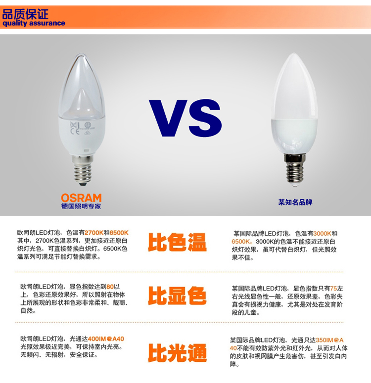 - 产品型号 欧司朗 星亮 4.5W/827烛泡 透明 磨砂 E14 2700K